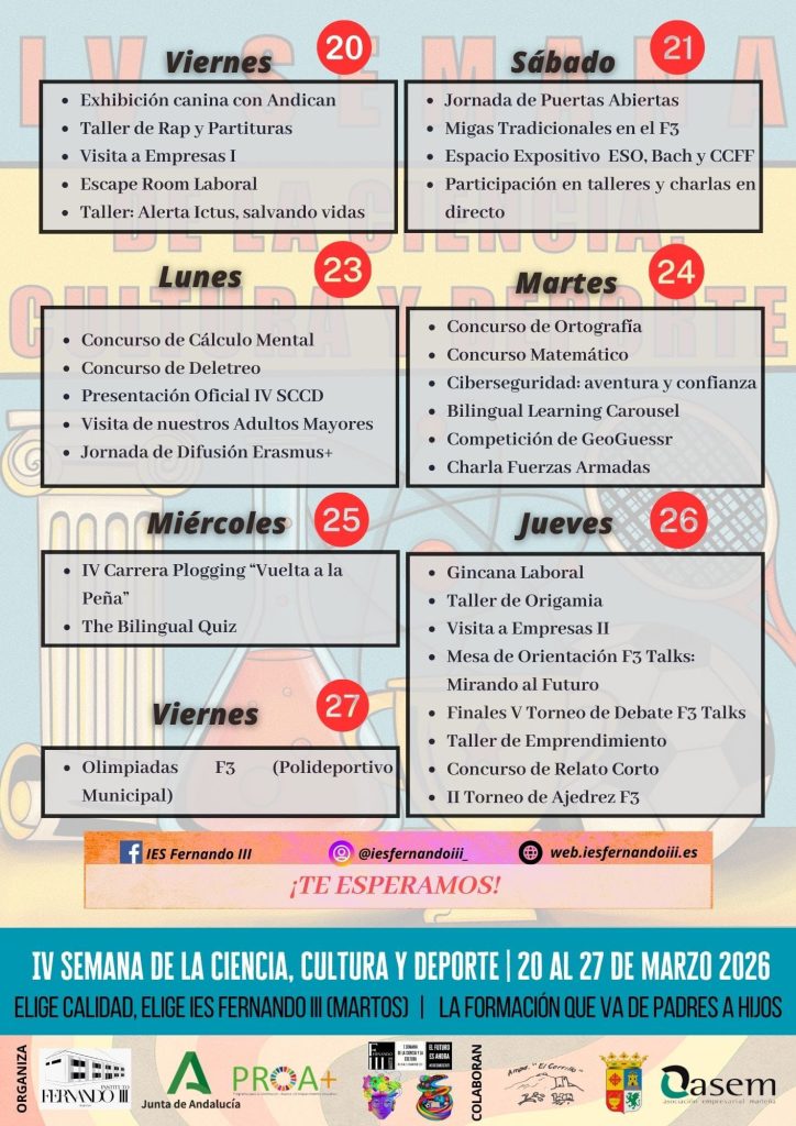 En el IES Fernando III volvemos a superarnos… ¡y ya está aquí nuestra IV Semana de la Ciencia, Cultura y Deporte!
